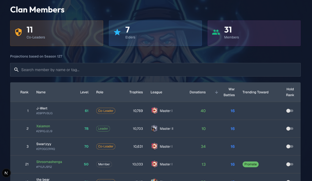 Manage your clan like a pro, get better insights on clan activity, and help make informed decisions about who's getting promoted, who's getting demoted - and who gets the boot!